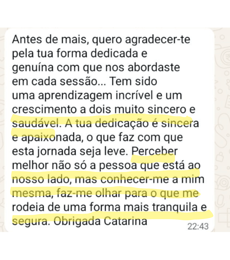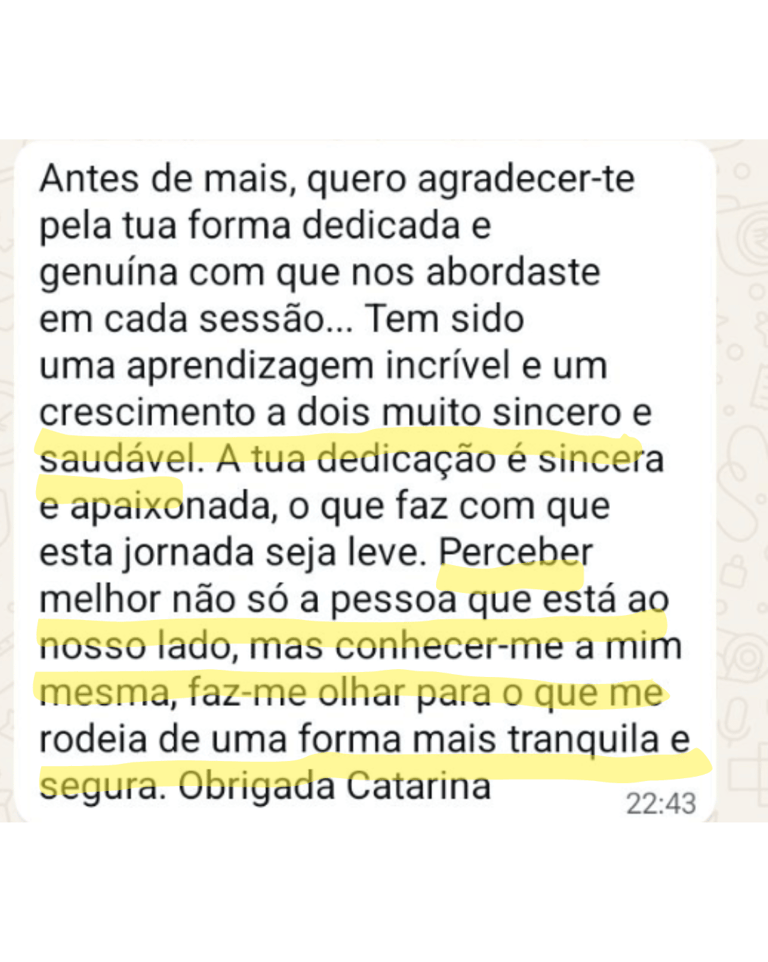 Ao longo do meu percurso, vi casais que chegaram em conflito constante voltarem a comunicar com respeito, a sentir proximidade emocional e a escolher novamente a relação com verdade.